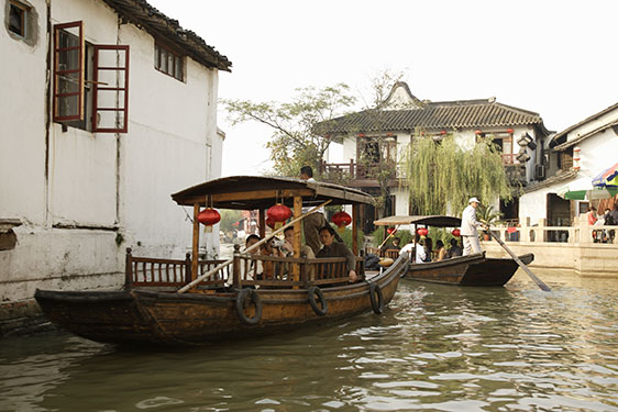 朱家角は上海から西へ車で1時間ほどの、歴史ある水郷の鎮で、古くからの五孔のアーチ型石橋である放生橋があり、大きな船も通ることが出来る。
