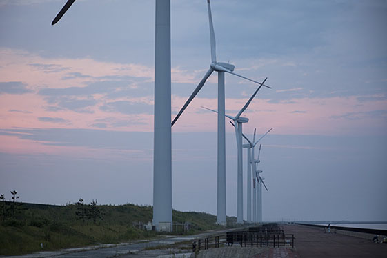 (株)エヌエスウインドパワーひびきが運営する、日本初の港湾施設内の風力発電所である。