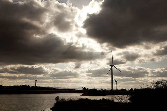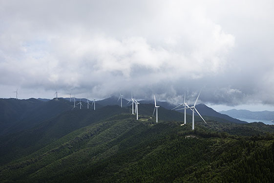 J-POWER電源開発が100%出資する阿蘇にしはらウィンドファームには、阿蘇外輪山の一つである俵山に、10基の風車が建てられている。